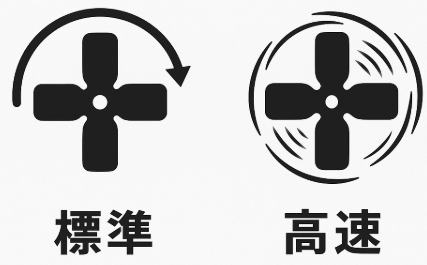 • 100cm~120cm x 4枚ブレード x 高速回転数