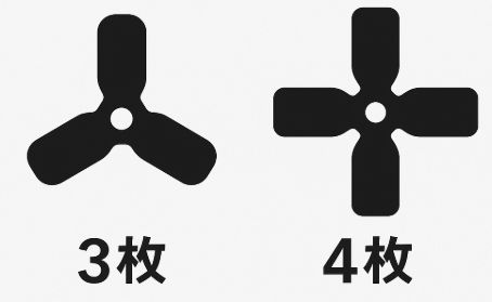 • 75cm~90cm x 3枚ブレード x 標準回転数